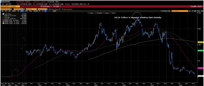 With most global economies having snapped back from Covid, this number of negative yielding interest rate debt now stands at only about $300 million at year end 2022. That’s the same level it stood 8 years ago in 2014.
